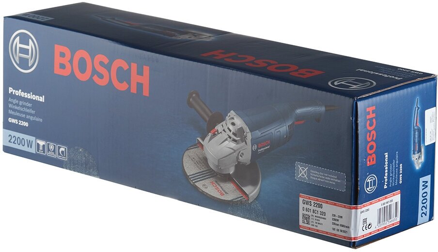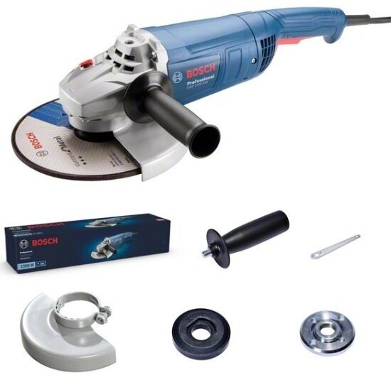 Type of power supply: mains, max. disc diameter: 230 mm, design features: power button lock, spindle lock, power consumption: 2200 W, packaging: box, max. disc speed: 6500 rpm, weight: 5.40 kg,