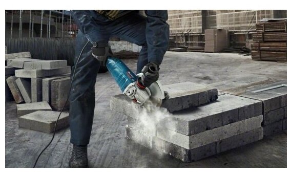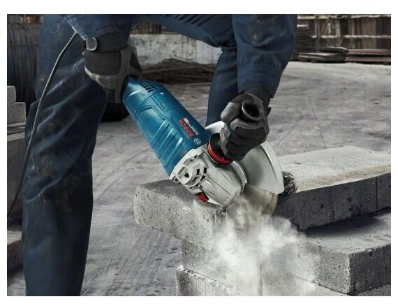 Type of power supply: mains, max. disc diameter: 230 mm, design features: anti-vibration system, power button lock, two-handed, additional handle, Protective cover, Rubber coated handles,