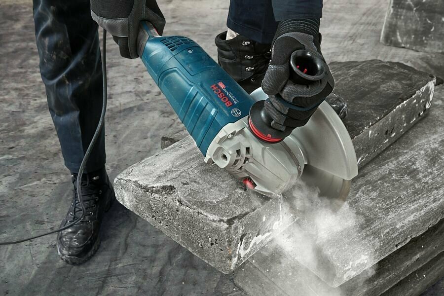 Type of power supply: mains, max. disc diameter: 230 mm, design features: anti-vibration system, power button lock, two-handed, additional handle, Protective cover, Rubber coated handles,