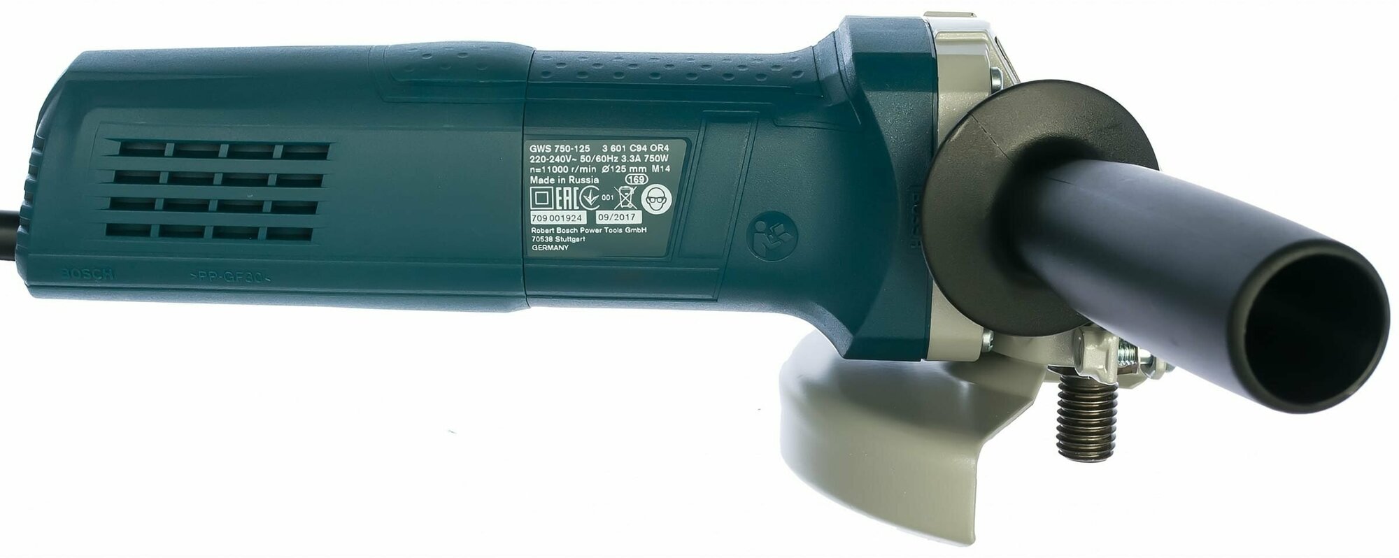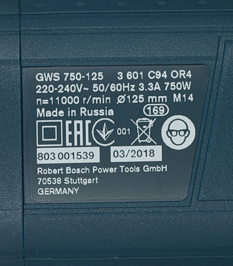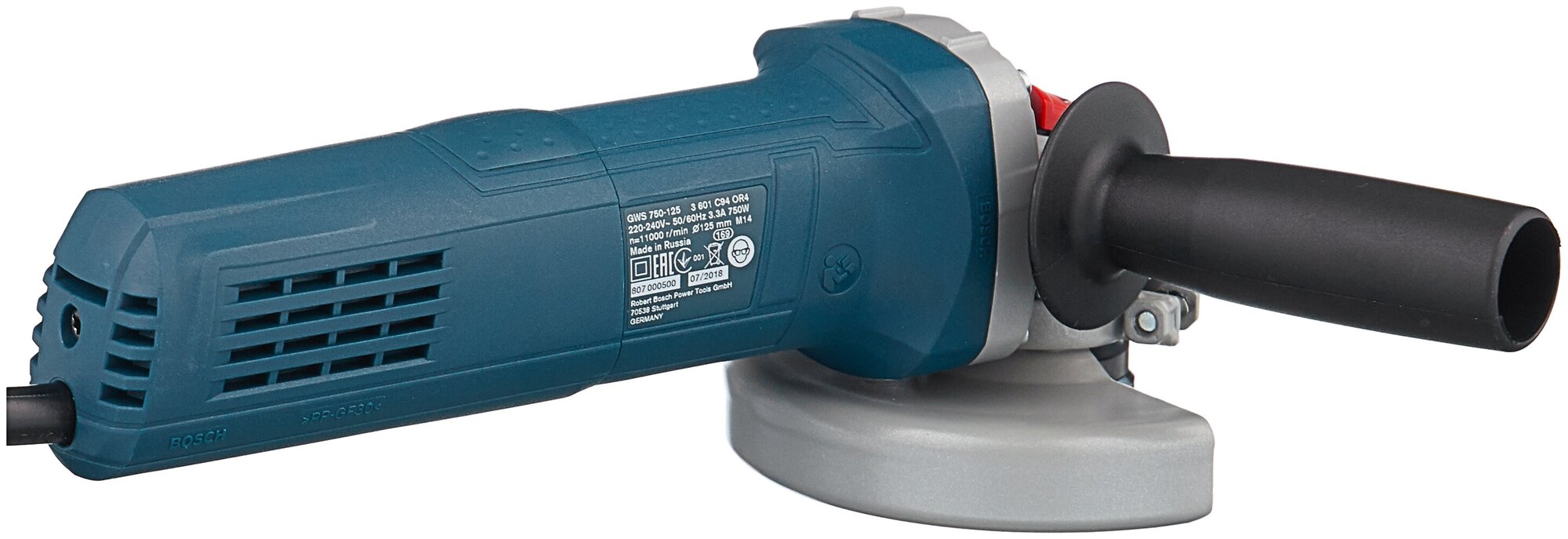Type of power supply: mains, max. disc diameter: 125 mm, design features: power button lock, additional handle, spindle lock, Protective cover, Rubber coated handles, power consumption: 7