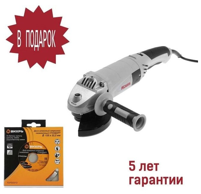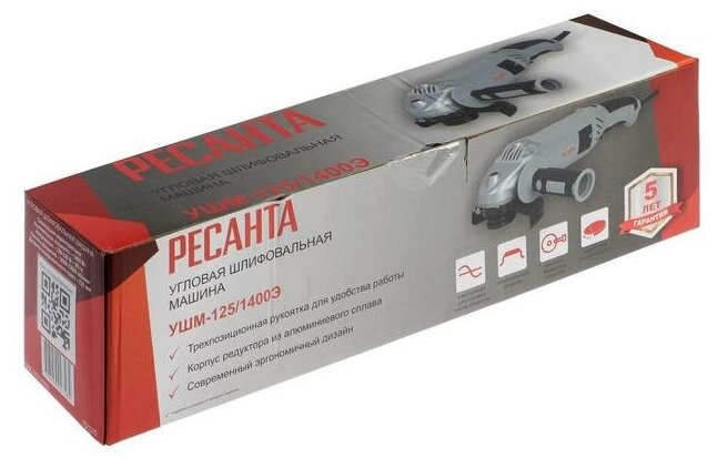 Angle grinder Resanta UShM-125/1400E, 1400 W, 125x22.2 mm, 3000-12000 rpm + disc