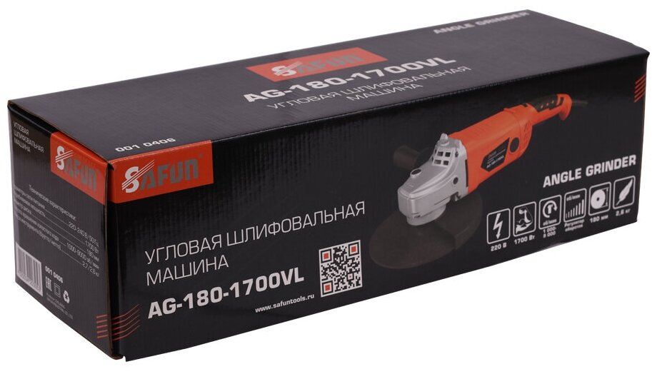 Type of power supply: mains, max. disc diameter: 180 mm, design features: power button lock, additional handle, spindle lock, power consumption: 1700 W, max. disc speed: 9000 rpm, weight