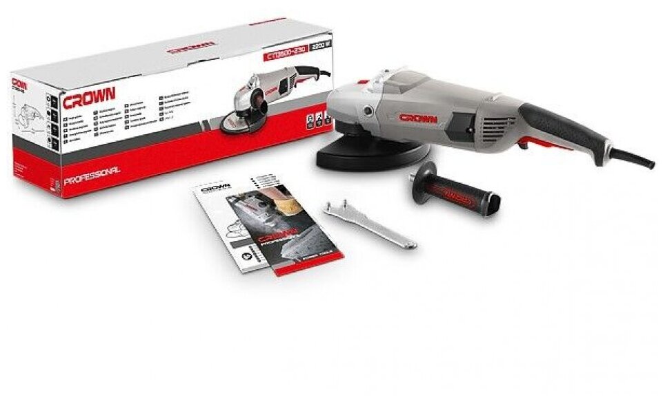 Type of power supply: mains, max. disc diameter: 230 mm, design features: two-handed, additional handle, spindle lock, Protective cover, Protective cover, Rubber-coated handles, Rubber-coated handles