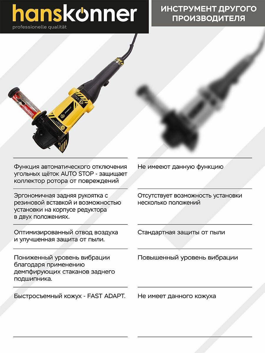 Type of power supply: mains, max. disc diameter: 125 mm, design features: power button lock, additional handle, spindle lock, power consumption: 1450 W, max. disk speed: 11000 rpm, weight