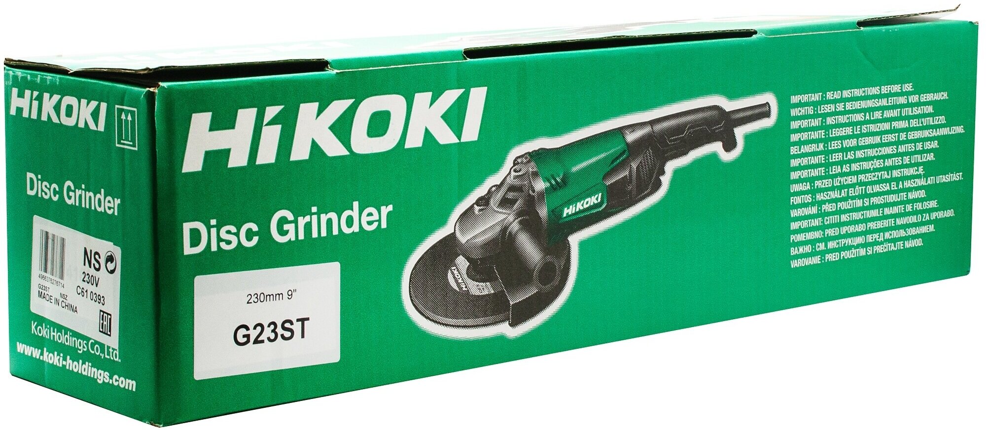 Type of power supply: mains, max. disc diameter: 230 mm, design features: power button lock, additional handle, dust collector, spindle lock, power consumption: 2000 W, packaging: box, max. often