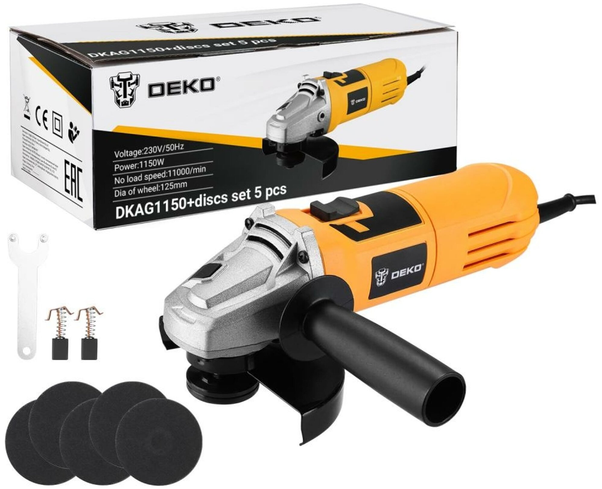 DEKO DKAG1150 angle grinder + disc set 5 pcs., 125 mm