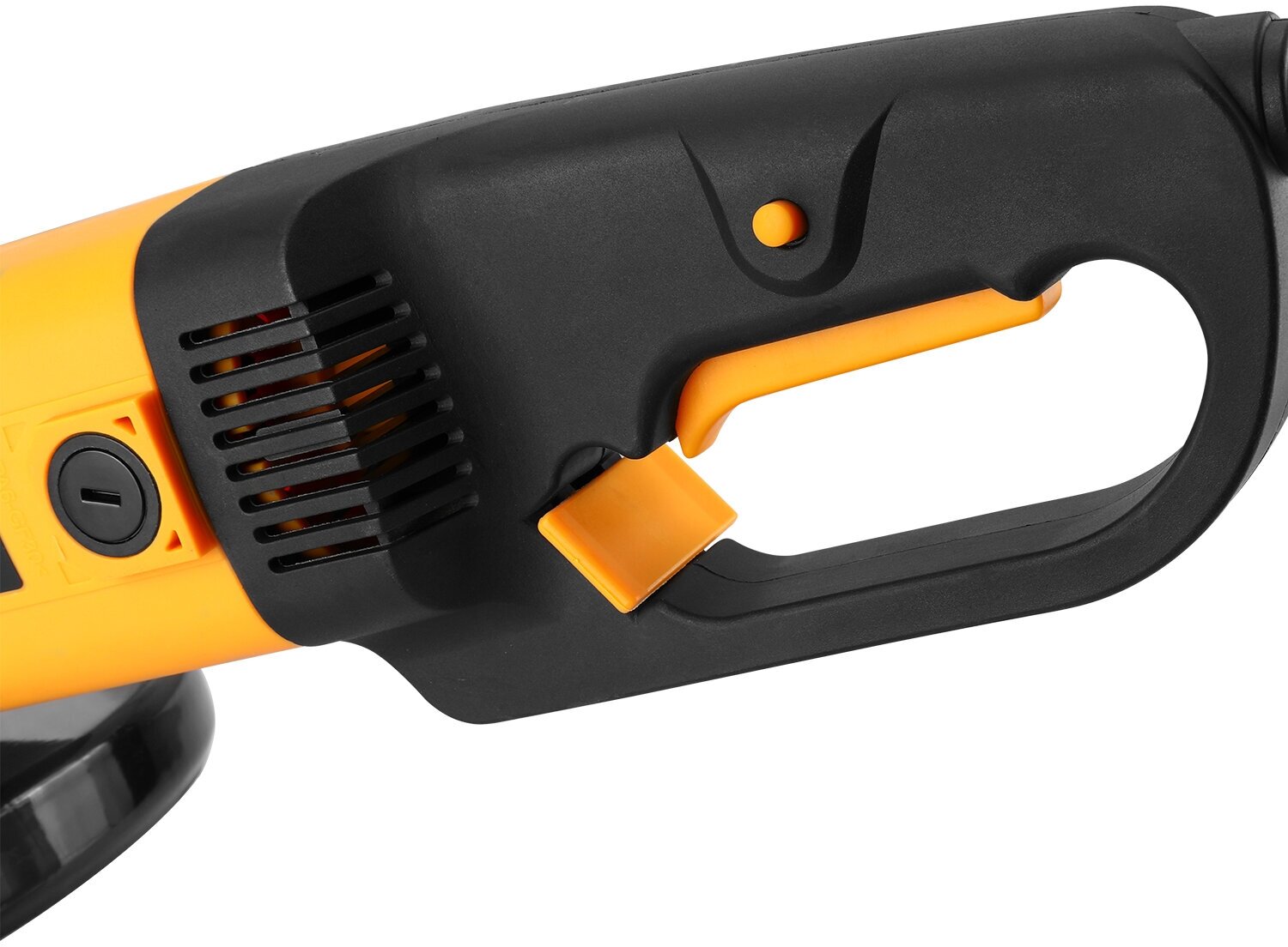 Type of power supply: mains, max. disc diameter: 230 mm, design features: two-handed, additional handle, spindle lock, Protection against overheating and overload, Protective cover, Handles with rubber coating, consumption