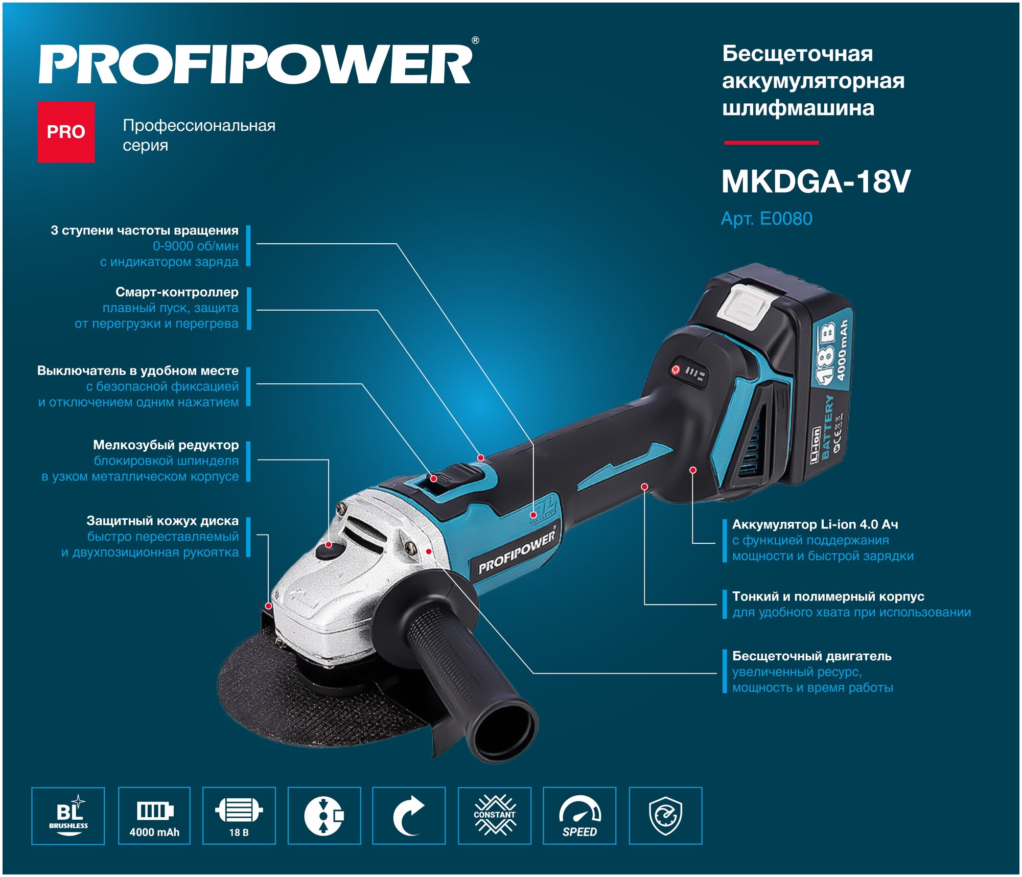 Type of power supply: mains, max. disc diameter: 125 mm, design features: power button lock, additional handle, spindle lock, power consumption: 1450 W, max. disk speed: 11000 rpm, weight