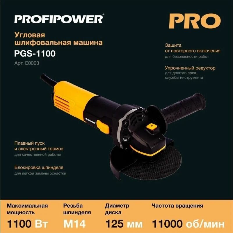 Type of power supply: mains, max. disc diameter: 125 mm, design features: power button lock, additional handle, spindle lock, power consumption: 1450 W, max. disk speed: 11000 rpm, weight
