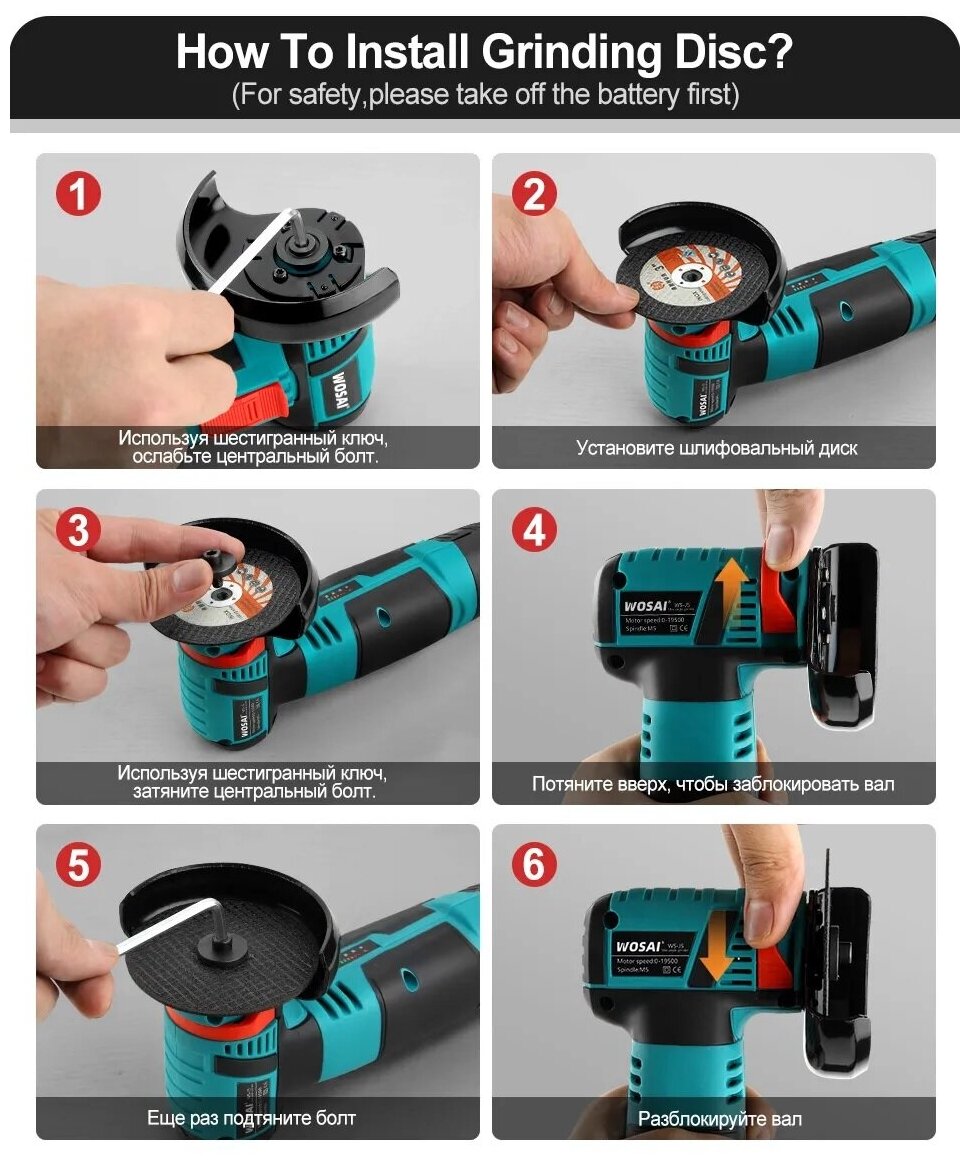Cordless mini angle grinder WOSAI 12 V 2.0 AH 75 mm / cordless angle grinder
