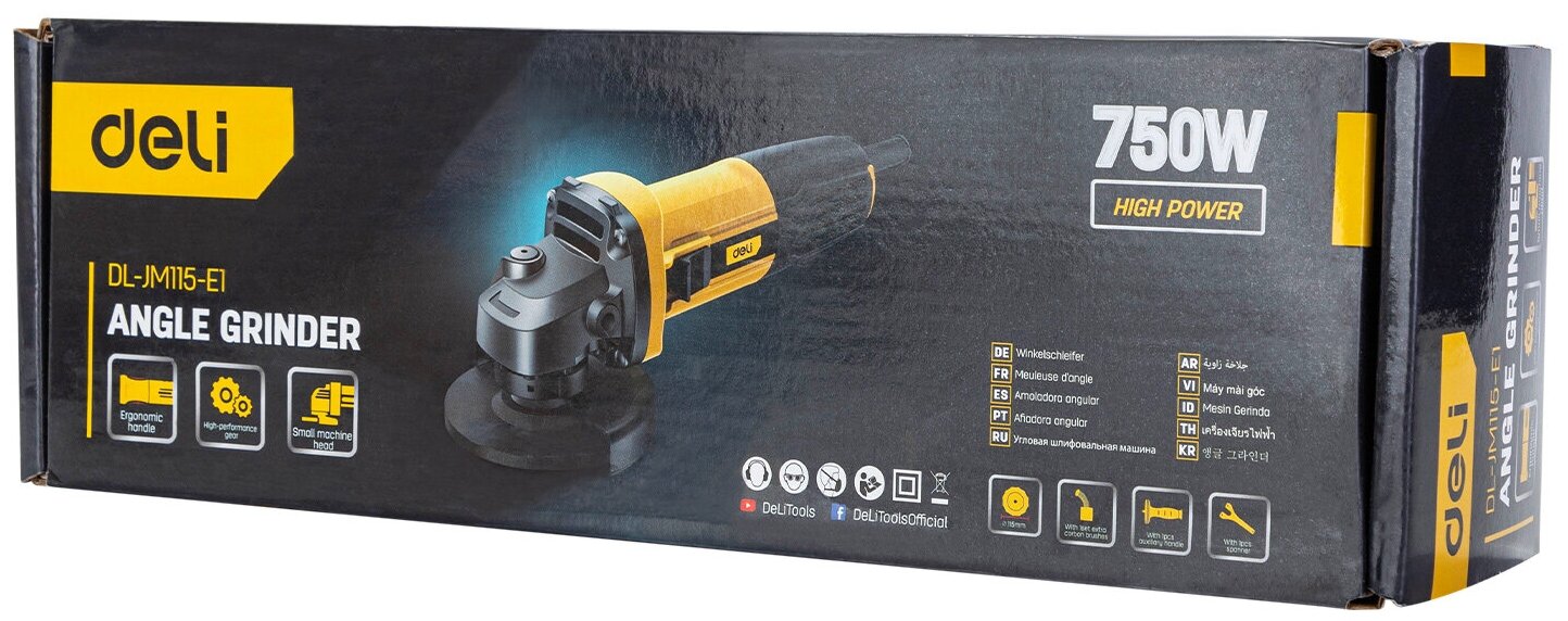 Angle grinder network Deli DL-JM115-E1 750W, 115mm, 12000rpm, cardboard