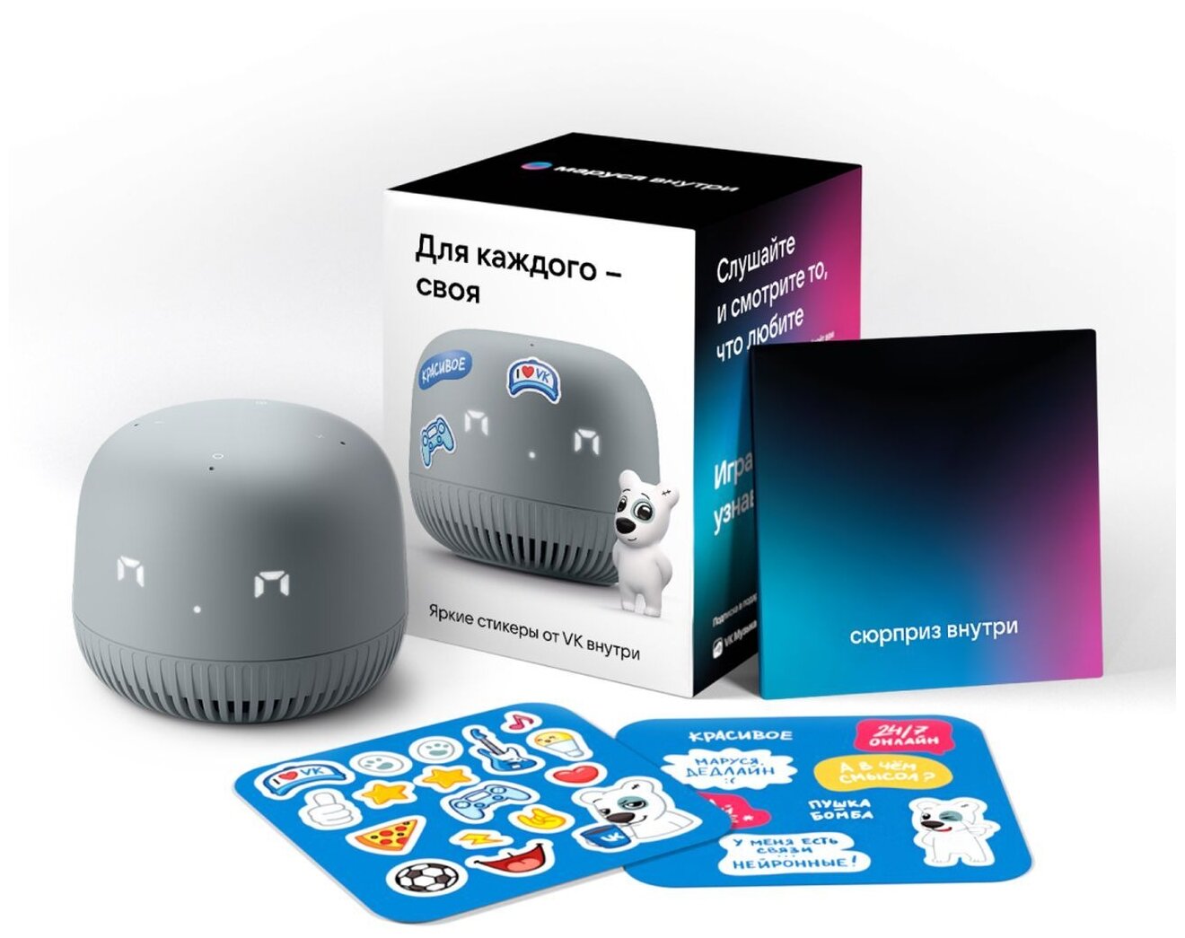 Equipment: smart speaker VK Capsule Neo, power supply with cable, a set of stickers, an introductory booklet; cable length 1.5 m