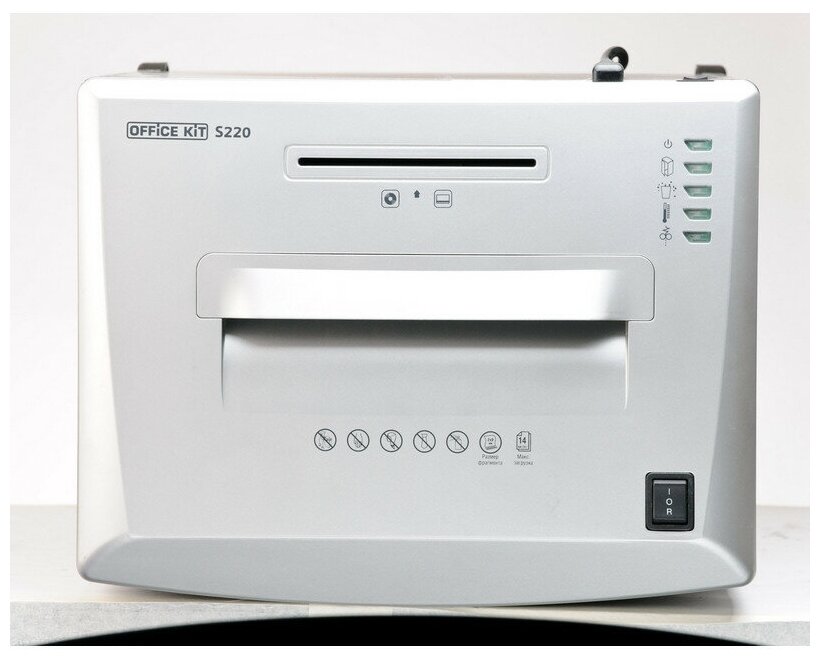 Shredder of documents Office Kit S220, 5 ur.sec. 2x9mm, 14 sheets, 32 l, paper clips, staples, CD, cards