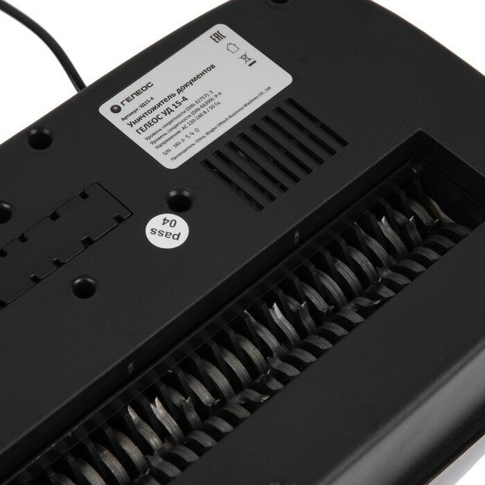 Description: Purpose: personal, privacy level: 4, cutting type: cross, material for destruction: paper, plastic cards, staples, number of sheets for a single load: 9 pcs., basket volume: 15 l, additional functions