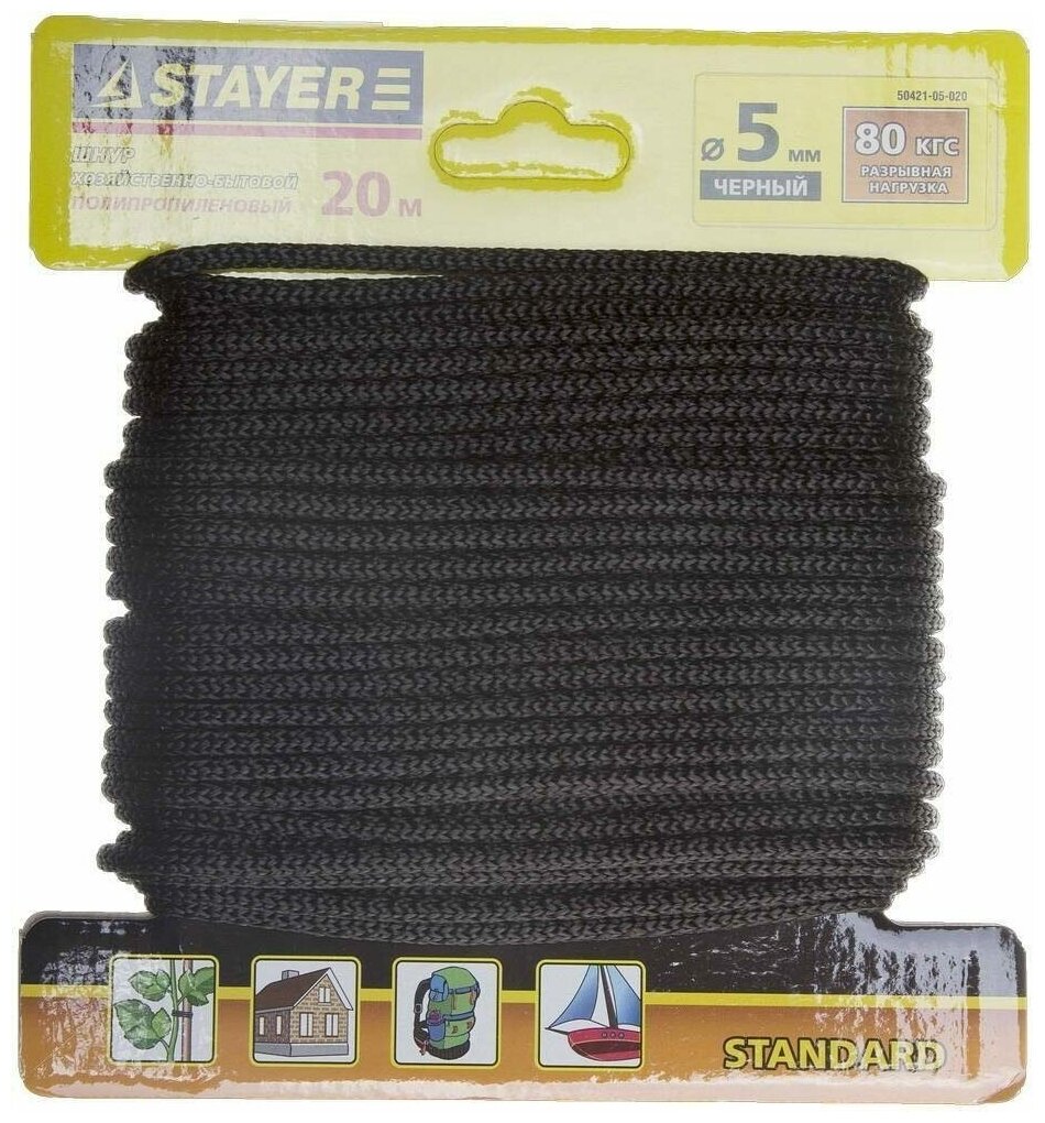 Cord STAYER STANDARD household, polypropylene, knitted, without core, black, d 5, 20m