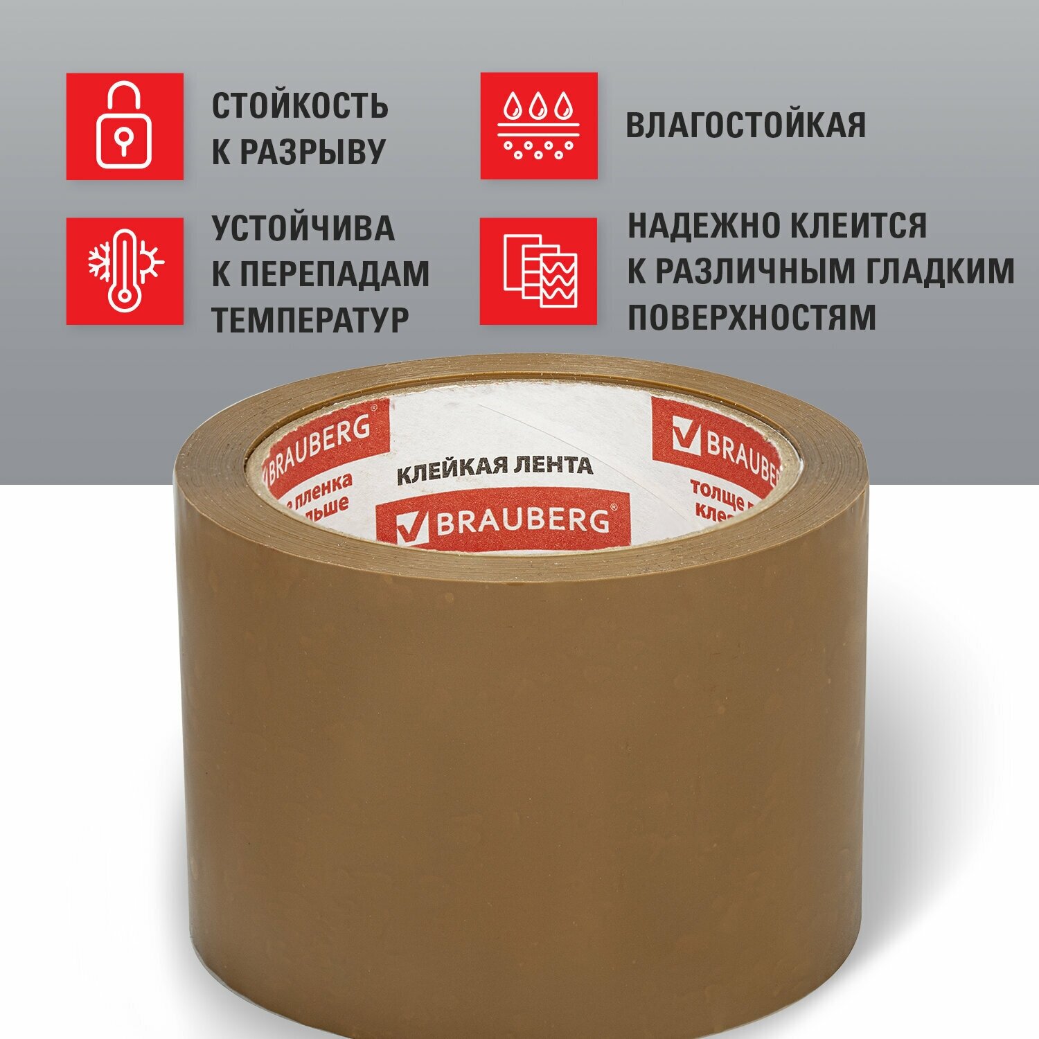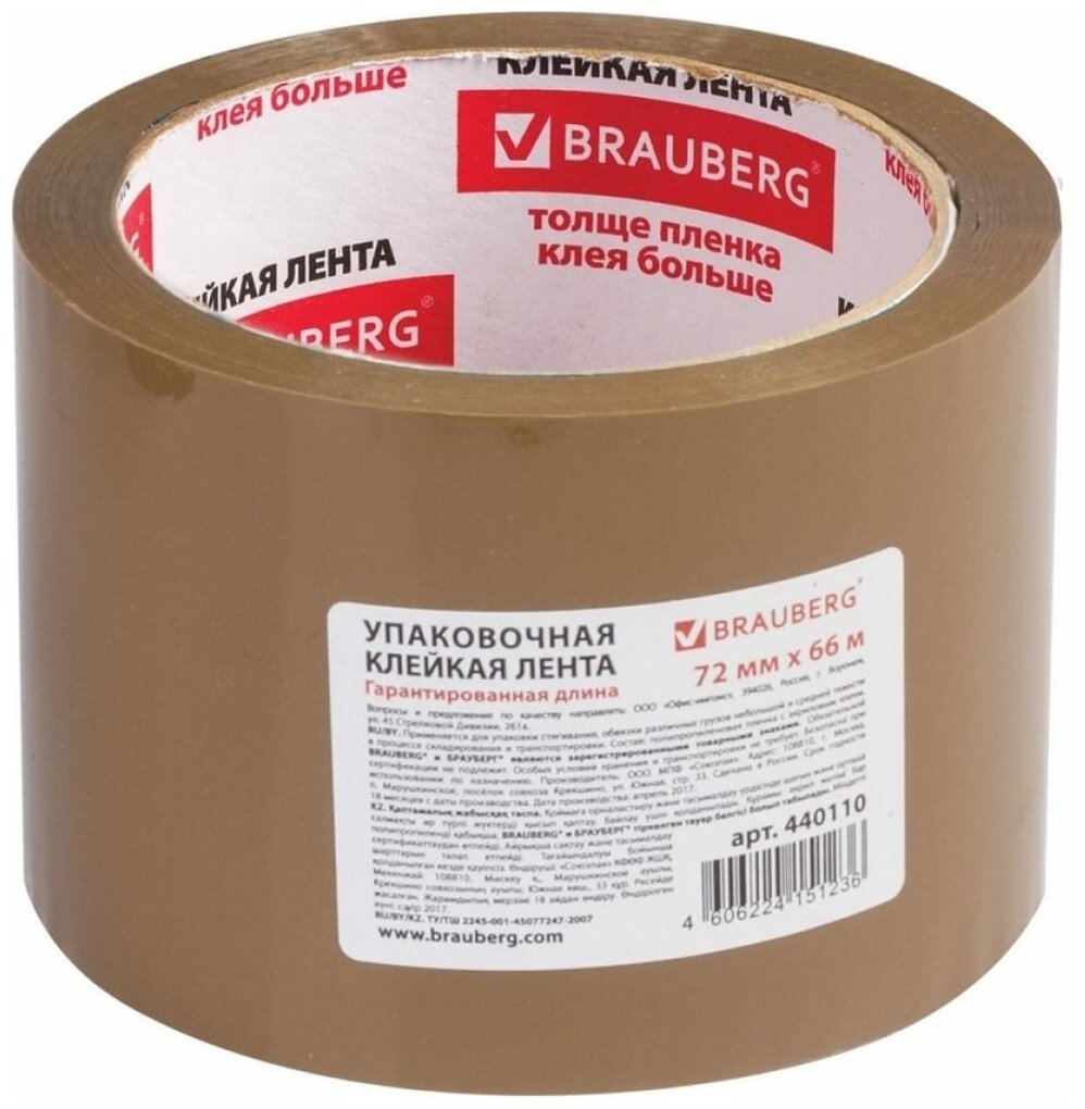 BRAUBERG Adhesive packing tape, 72 mm x 66 m, brown, thickness 45 microns, brauberg, 440110