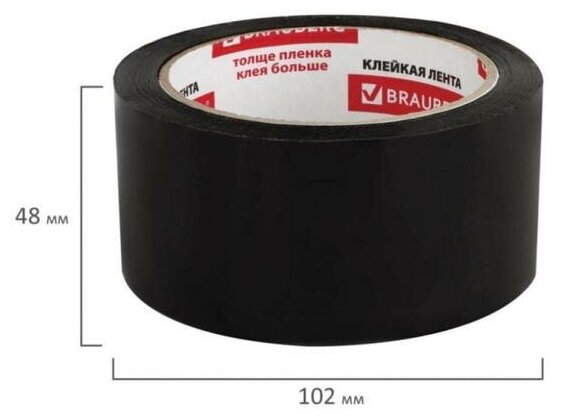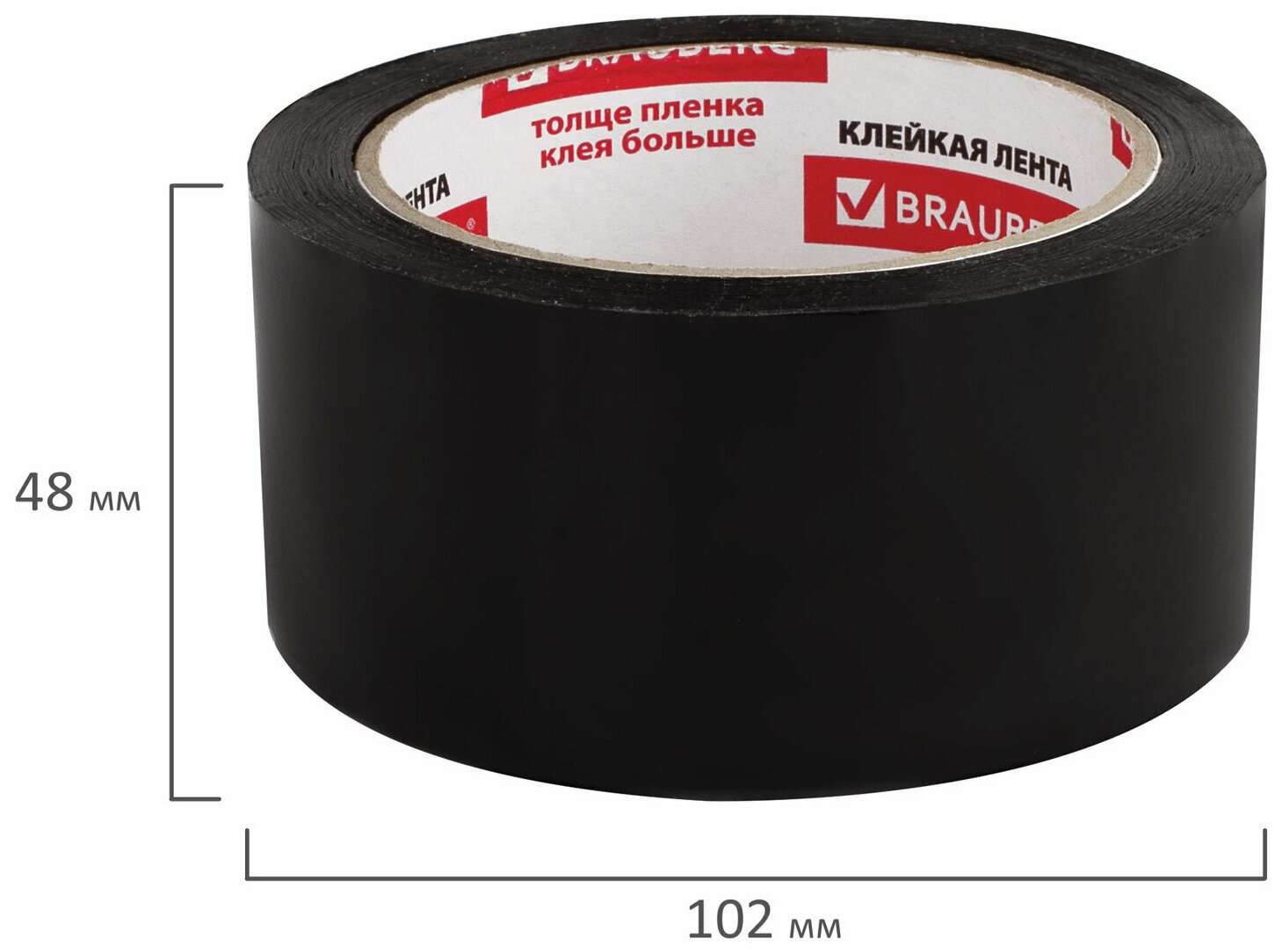 BRAUBERG Adhesive packing tape, 48 mm x 66 m, black, thickness 45 microns, brauberg, 440155, 6 pcs.