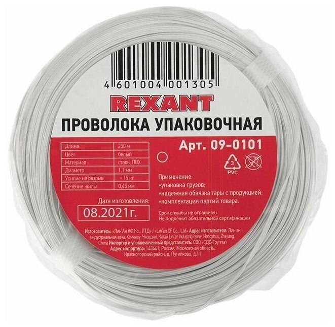 Packaging wire Rexant on a reel, 250m, d=1.1mm, steel core 0.45mm, PVC sheath, 1 pc. 09-0101