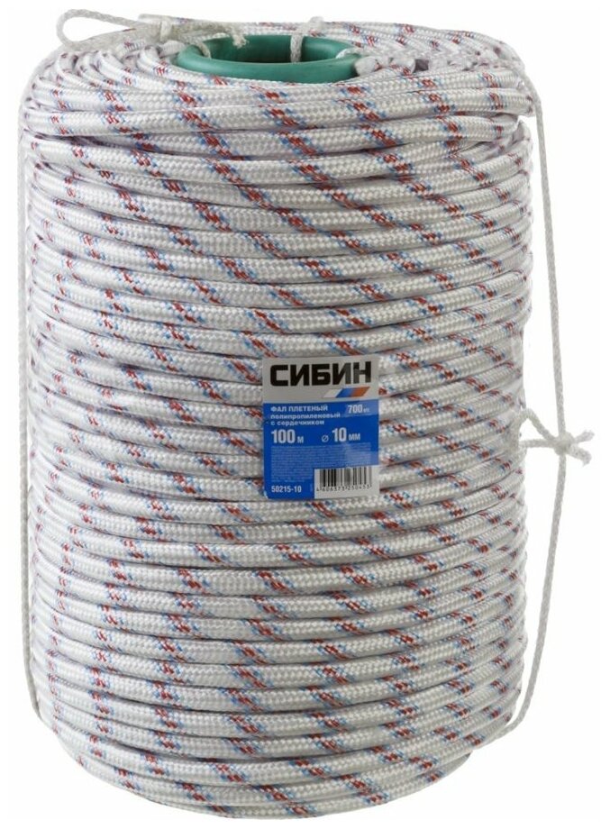 Polypropylene braided halyard with core 700 kgf 10 mm 100 m Sibin 50215-10