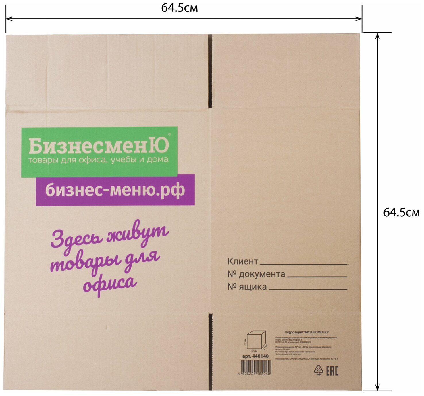 Type: box, material: corrugated cardboard, release form: sheet, length: 370 mm, width: 270 mm, height: 370 mm, thickness: 3 mm