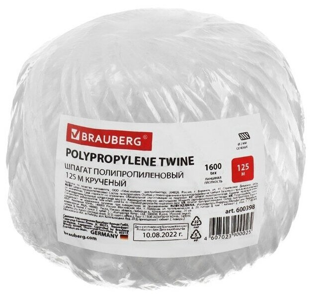 Type: twine, material: polypropylene, release form: bobbin, length: 125000 mm, height: 110 mm