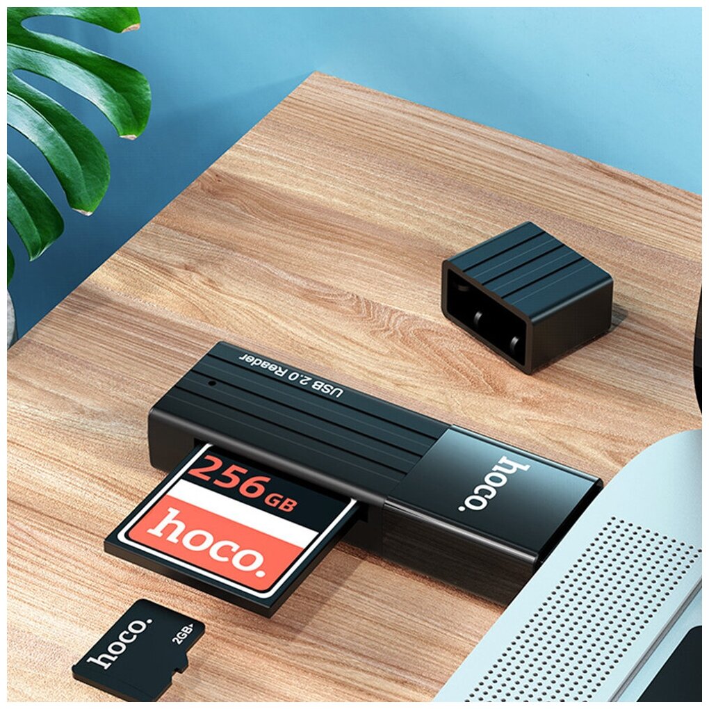 2 in 1 micro card reader, USB 2.0 Micro SD and TF card adapter, hoco HB20, black