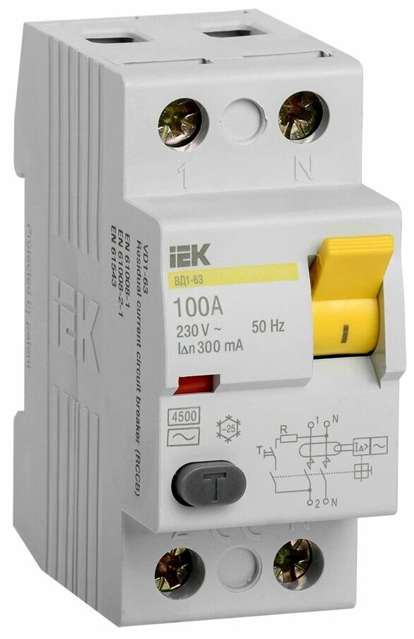 Differential current RCD 2p 63A 300mA type AC VD1-63 IEK MDV10-2-063-300