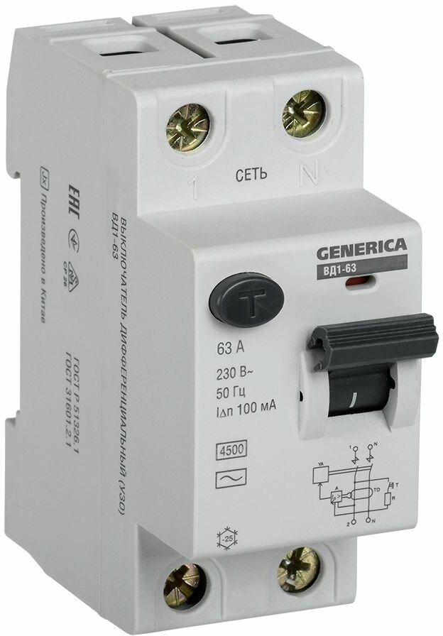 Differential RCD VD1-63 2R 63A 100mA GENERICA