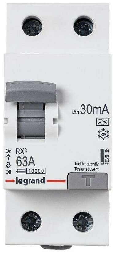 Residual current switch RCD 2p 63A 30mA type A RX3 Leg 402038