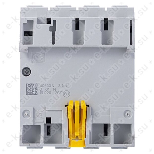 Leakage current: 30 mA, number of poles: 4, rated voltage: 380 V, rated current: 40 A, number of modules: 4, rated breaking time: 20 ms, operating principle: electromechanical, type: AC, protection class: IP2X