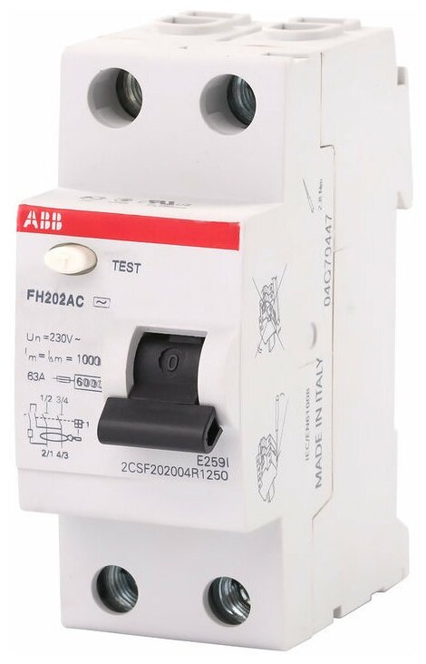 RCD residual current device ABB FH202 63A-100mA/AC