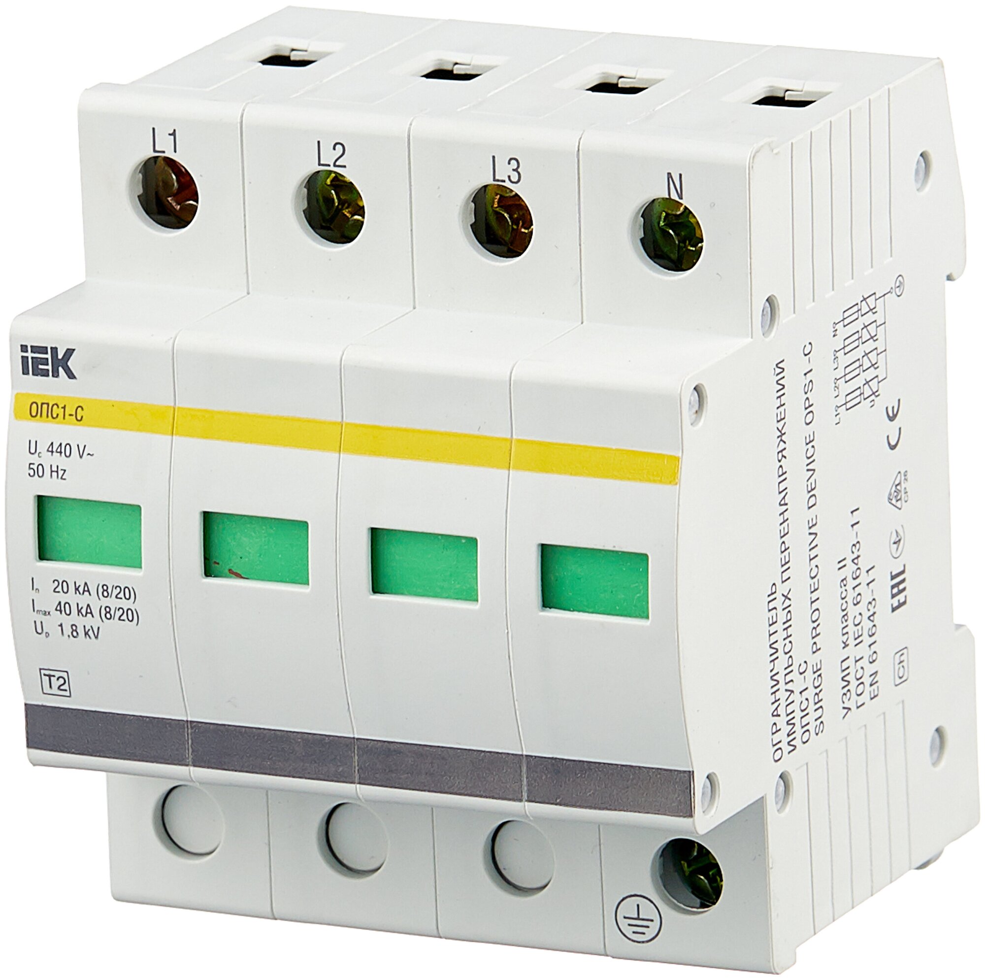 Type: overvoltage protection, model/version: varistor, mounting method: DIN rail with 35 mm profile, operating voltage type voltage: AC altern., Nom. discharge current 8/20 L-N: 20 kA