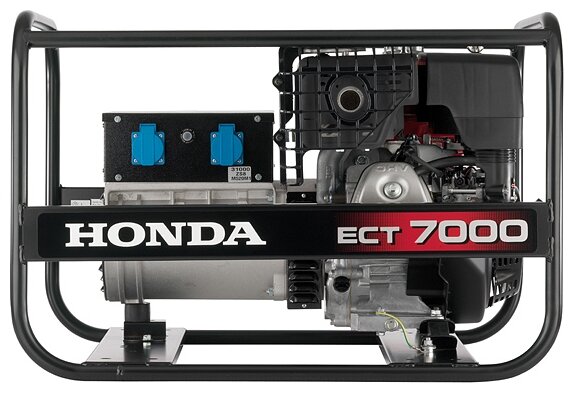 Type: gasoline, rated power: 7000 W, maximum power: 6500 W, start: manual, number of phases: 3, weight: 77 kg, cooling type: air, noise level: 74 dB, Number of sockets 220 V: 2, autonomy: 2.20 h, features: muffler