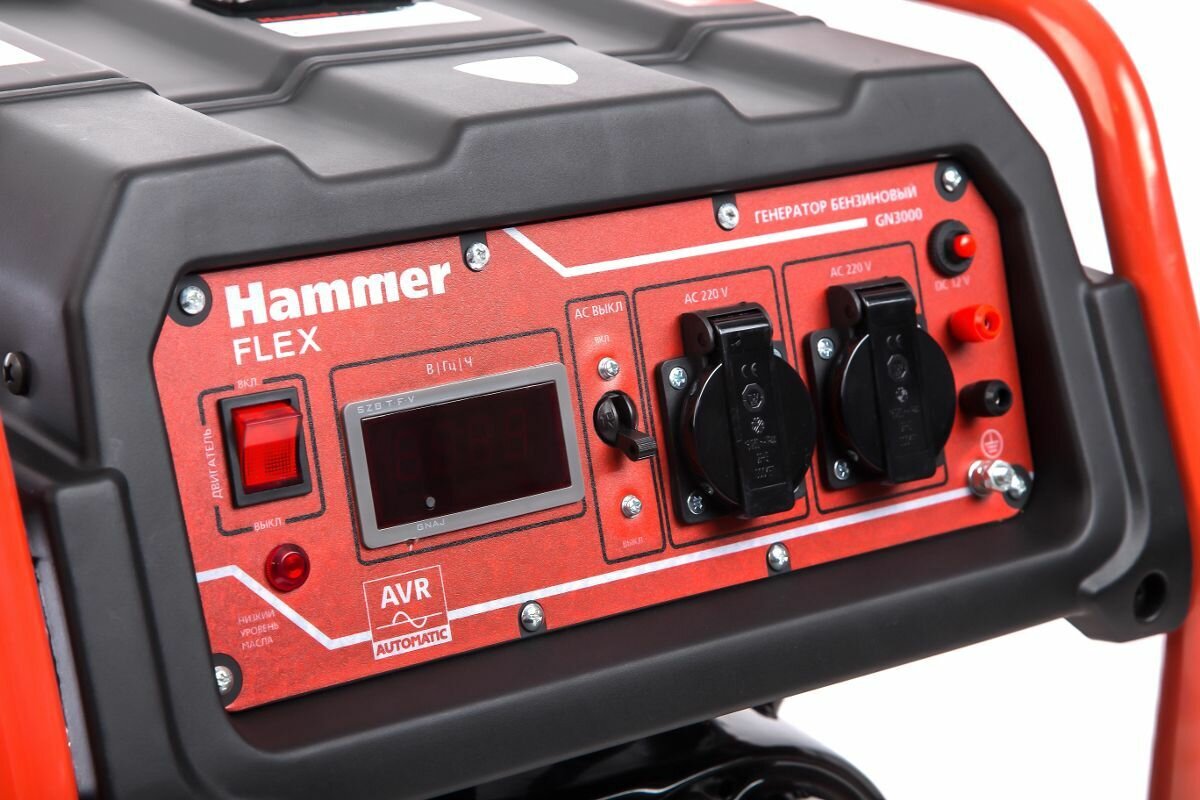 Type: gasoline, rated power: 2800 W, maximum power: 3000 W, start: manual, number of phases: 1, engine power: 7 HP, weight: 45 kg, cooling type: air, continuous operation time: 9 h , Number of sockets 220 V: 2, especially