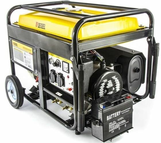 Type: gasoline, rated power: 4500 W, maximum power: 5000 W, start: manual, electric, number of phases: 1, engine power: 15 HP, weight: 80 kg, cooling type: air, noise level: 97 dB, Number of sockets 220 V: 2