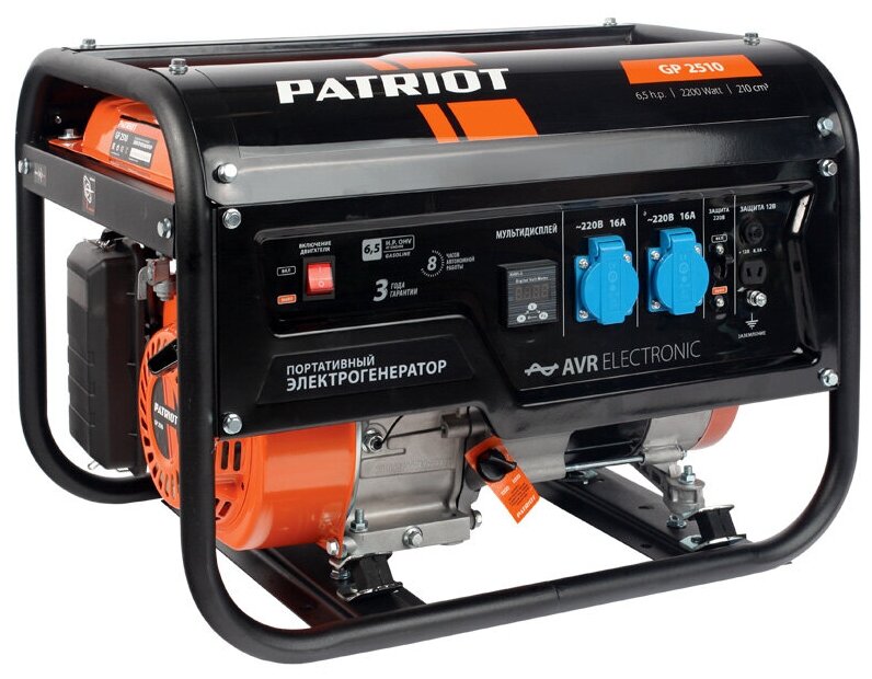 Type: gasoline, rated power: 4200 W, maximum power: 5000 W, start: manual, number of phases: 3, engine power: 13 HP, weight: 98 kg, cooling type: air, Number of sockets 220 V: 2 , autonomy: 8 h, features: deep