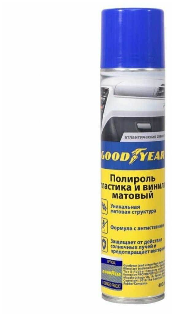 Spray, aerosol, polishing type: matte, purpose: for leather, for plastic, for dashboard, for rubber, Polishing, action: filling minor scratches, cleaning, preventing dirt, adding shine, removing