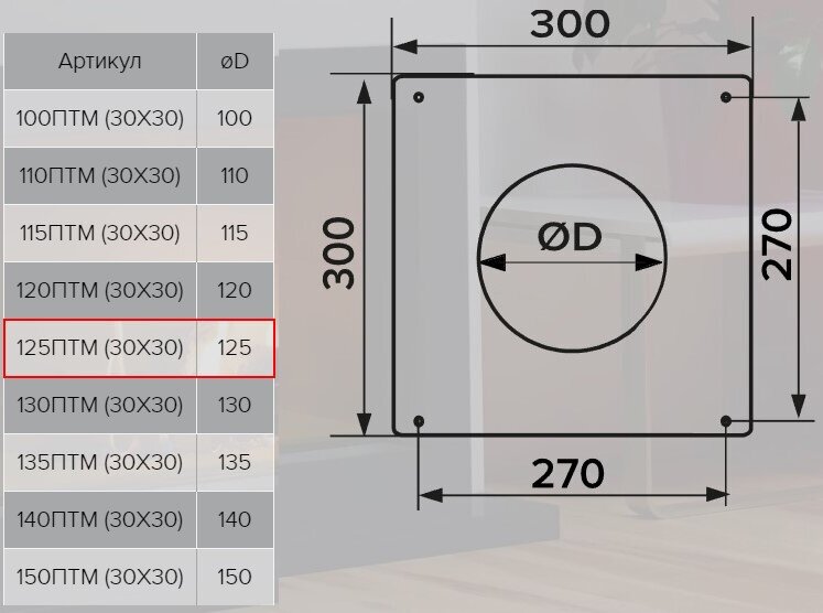 Width: 300 mm, height: 300 mm, color: white, material: steel coated with polymer enamel