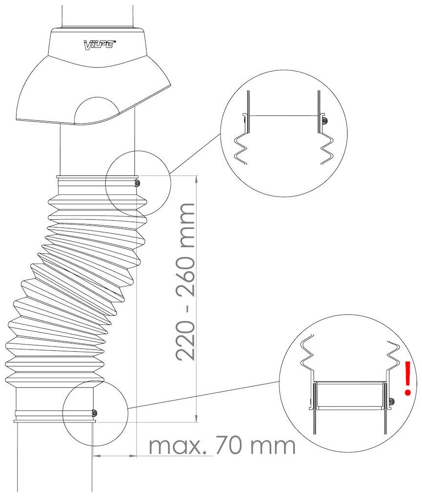 Type: flexible connector, section: round, material: PVC, tie-in type: round