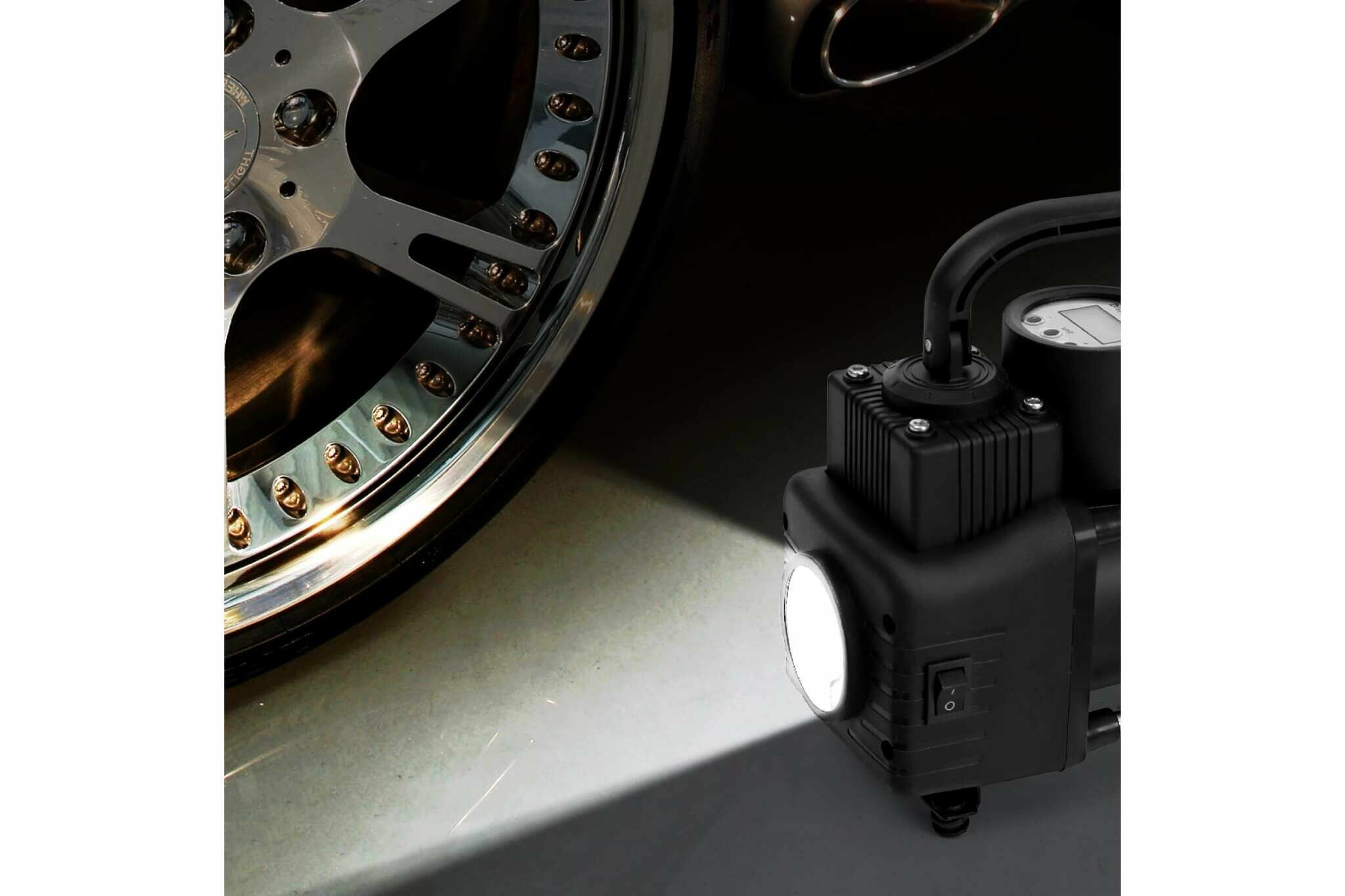 Power: from the cigarette lighter socket, from the battery terminals, from the car network 12V, voltage: 12 V, input capacity: 95 l/min, power: 200 W, maximum pressure: 10 atm, compressor type: piston, cable length