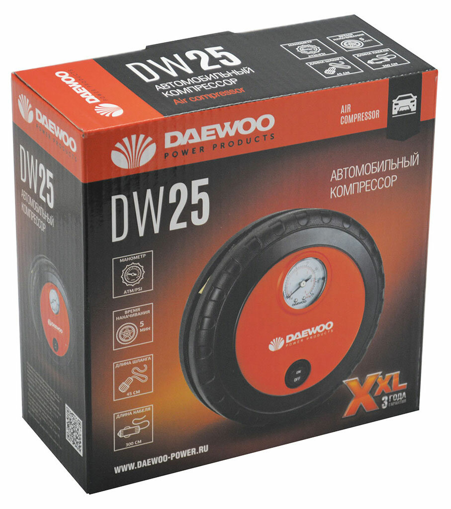 Power supply: from the cigarette lighter socket, voltage: 12 V, inlet capacity: 40 l/min, maximum pressure: 3.50 atm, compressor type: piston, power cable length: 2.80 m, air hose length: 1 m, pressure gauge: analog