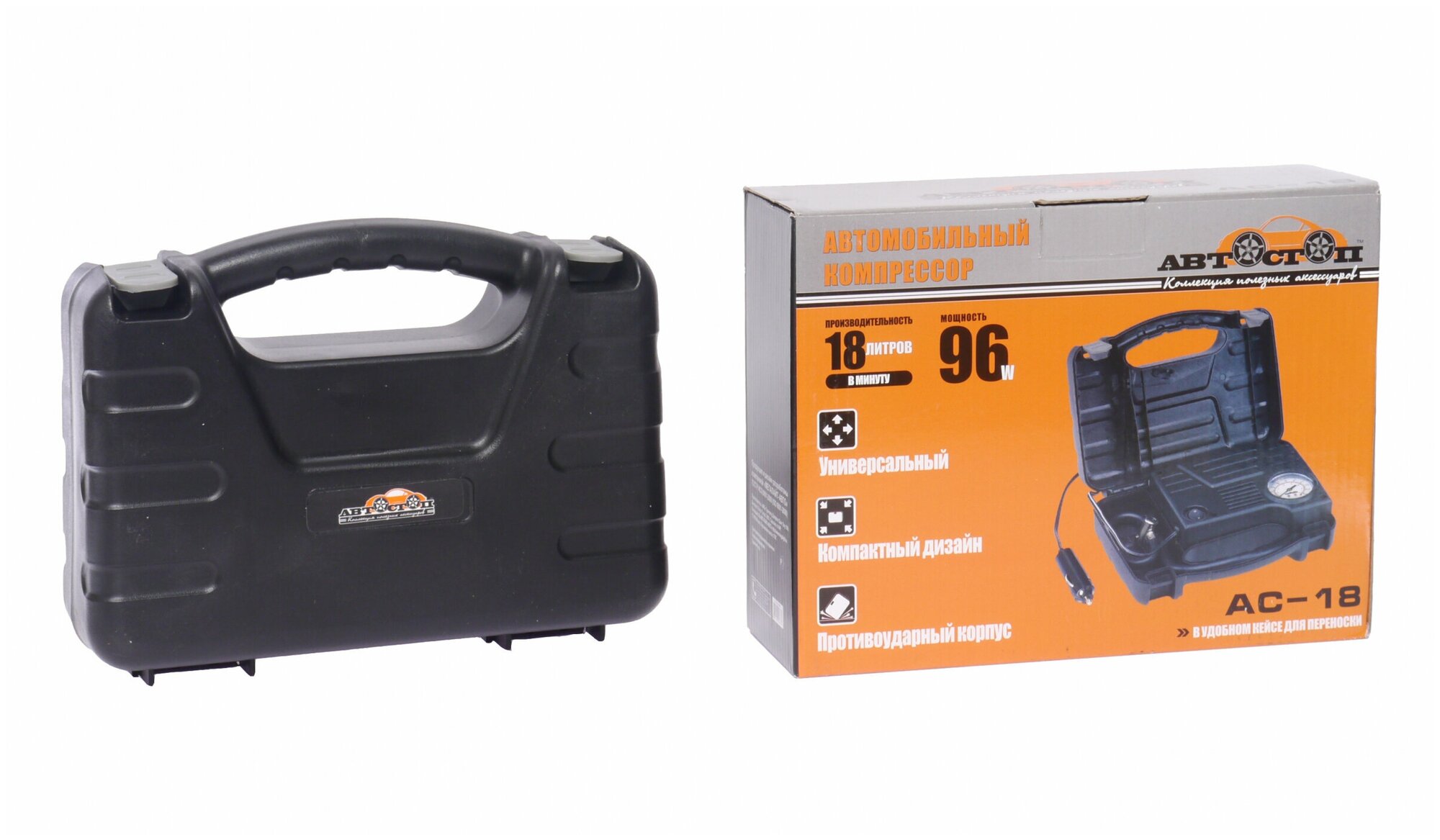 Compressor AUTOSTOP AS-18 - 1 pc. Set of 3 adapter attachments - 1 pc. Operating instructions - 1 pc.