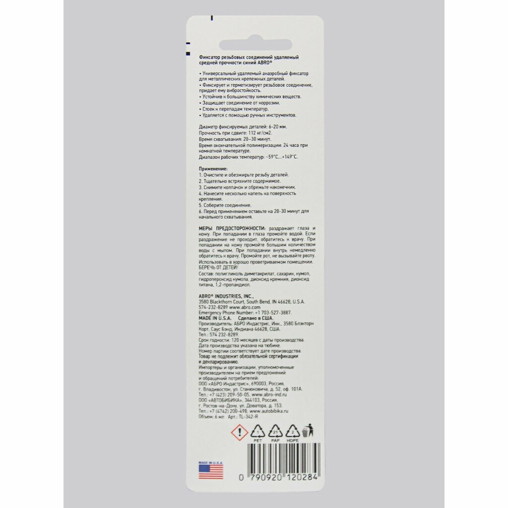 Threaded connections of medium fixation detachable ABRO TL-342-R