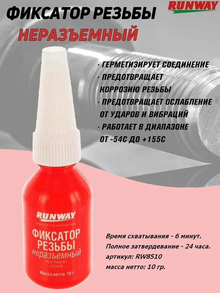 Thread Lock Runway 10 G Red RUNWAY art. RW8510