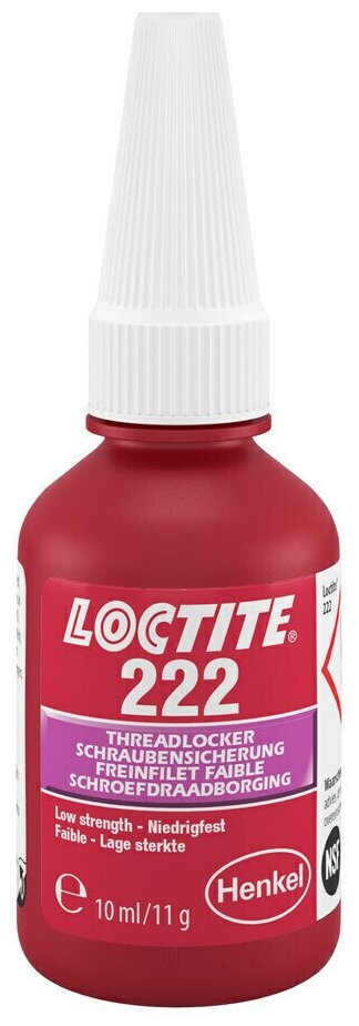 Threads Loctite 222: Low Strength Threads For Bolts, Nuts, Studs, Prevents Loosening Due To Vibration, Seals Threads, 10 ml LOCTITE art. 267358