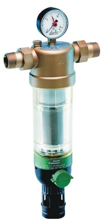 Body material: brass, type of connection: coupling NR/NR, nominal pressure: PN 16, mesh size: 50 µm, options: pressure gauge, drain