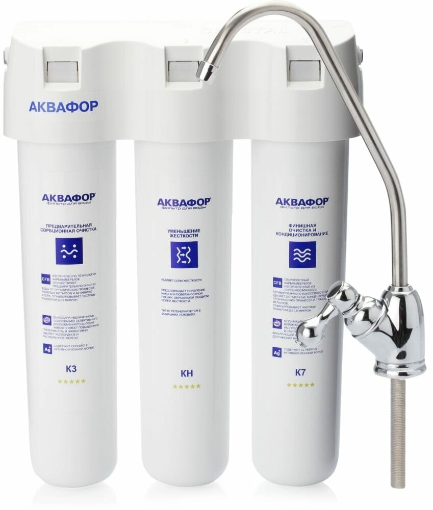 Filter type: under-sink system, type: filter, cleaning functions: ion exchange, mechanical filtration, free chlorine cleaning, features: water connection, separate faucet, number of cleaning stages: 3, water type