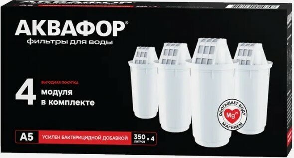 Funnel volume 1.2l; cartridge A5 retains natural magnesium in water; for rusty, muddy water with a large amount of mechanical impurities; complete set: jug, funnel, flip-flop lid, set of replaceable modules A5 3+1 pcs.