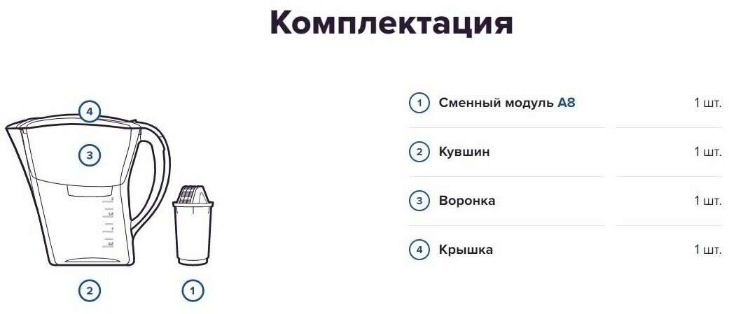 Filter type: jug, type: filter, cleaning functions: mechanical filtration, free chlorine cleaning, features: filter module replacement calendar, transparent housing, number of cleaning stages: 1, water type: cold