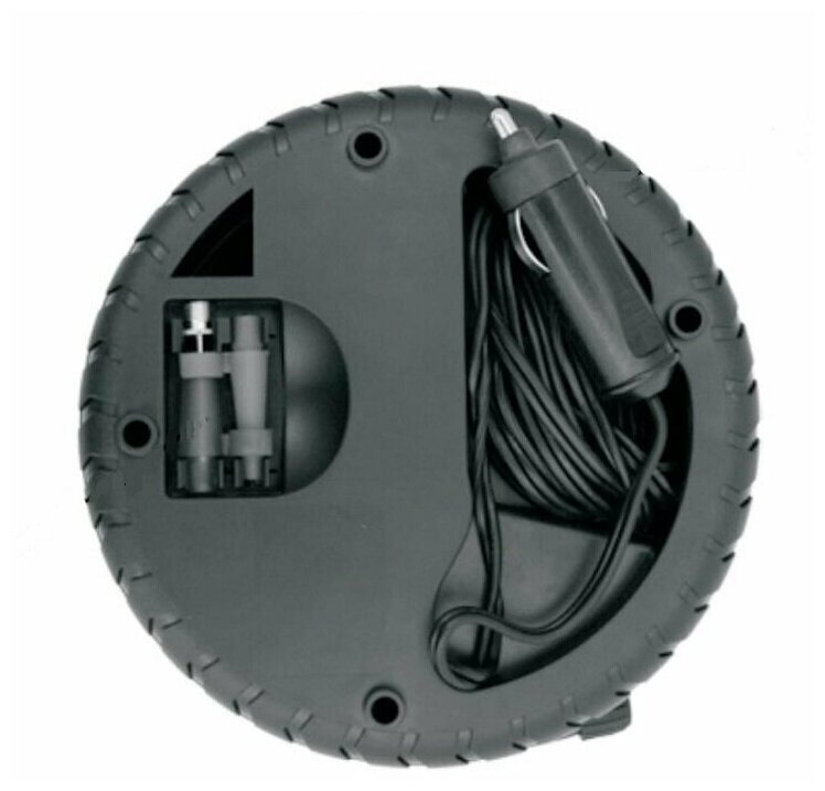 Power: from the cigarette lighter socket, voltage: 12 V, inlet capacity: 20 l/min, maximum pressure: 10 atm, compressor type: piston, power cable length: 0.30 m, air hose length: 0.45 m, pressure gauge: analog
